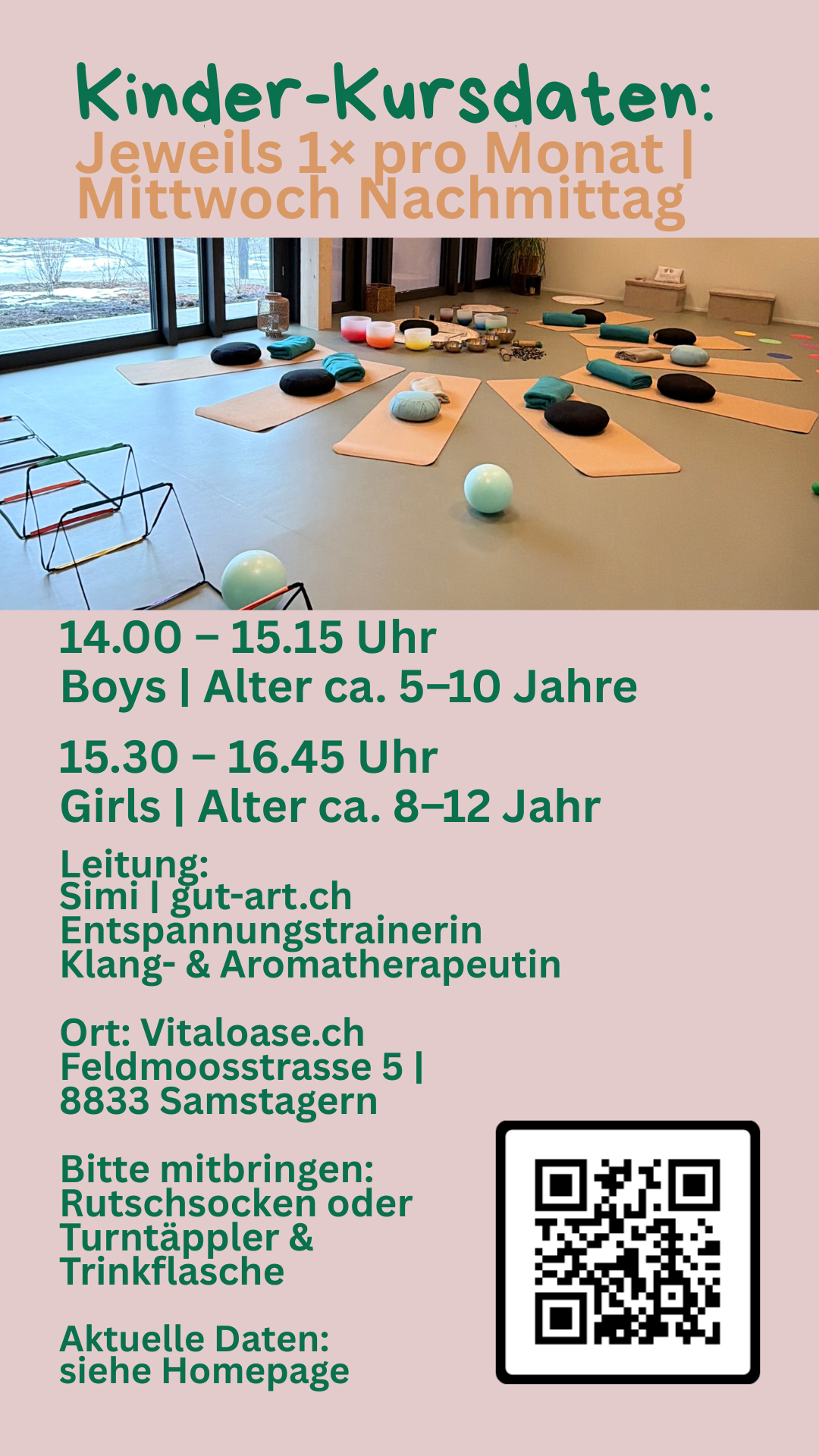 Jeweils 1x monatlich Mittwoch Nachmittag: